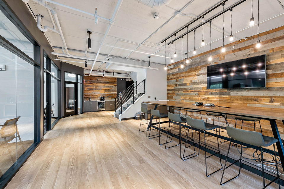 Panels Plus hired Sequoia as their general contractor to perform a two story build-out for their new office location. A modern/industrial design flows through the space starting with the first floor reception and four office suites. The second floor includes a kitchen, break area, four additional offices, work room, and a conference room. The high quality finishes and stunning aesthetics of this space give off an inviting and professional feel for their staff, clients, and colleagues.